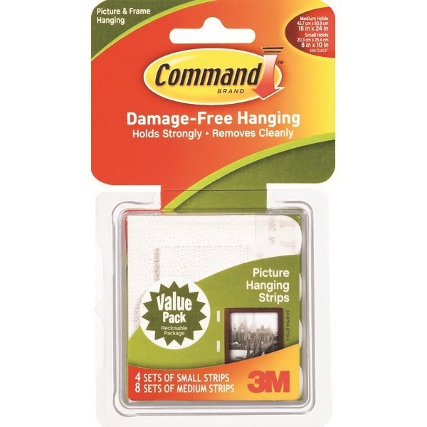 3M 17203 Command Mounting Picture Hanging Strips Small & Medium Combo White Pack 4