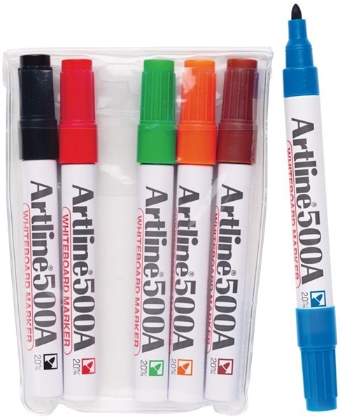 Artline 500A Whiteboard Marker Bullet 2mm Assorted Wallet 6
