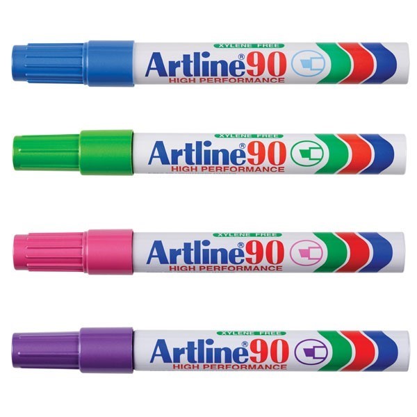Artline 90 Permanent Marker Chisel 2-5mm Assorted Brights Box 12