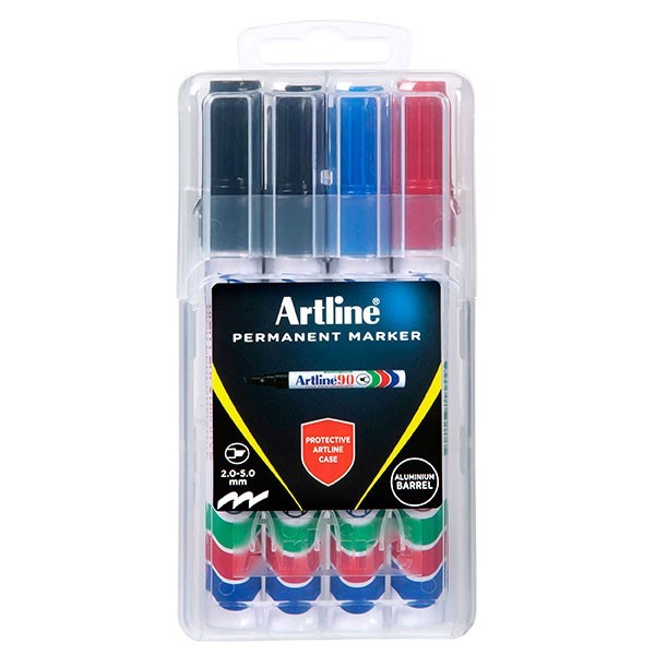 Artline 90 Permanent Marker Chisel 2-5mm Hard Case Assorted Wallet 4