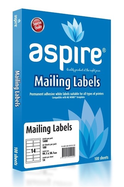 Aspire Address Labels Laser Inkjet 99.1 x 38.1mm 14 Per Sheet Pack 100