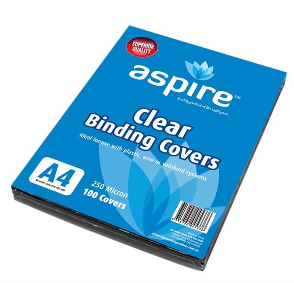 Aspire Binding Covers A4 Clear Plastic 250 Microns Pack 100