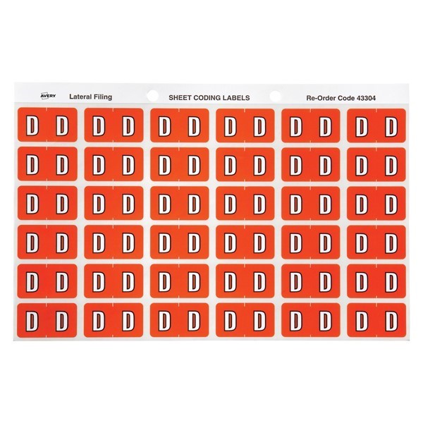 Avery 43304 D Side Tab Colour Coding Labels Dark Orange Pack 180