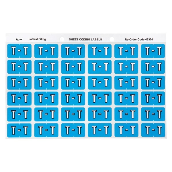 Avery 43320 T Side Tab Colour Coding Labels Blue Pack 180