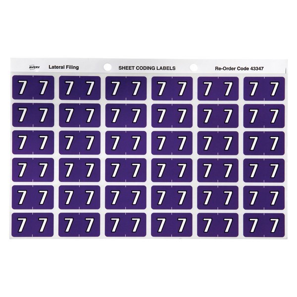 Avery 43347 7 Side Tab Colour Coding Labels Purple Pack 180