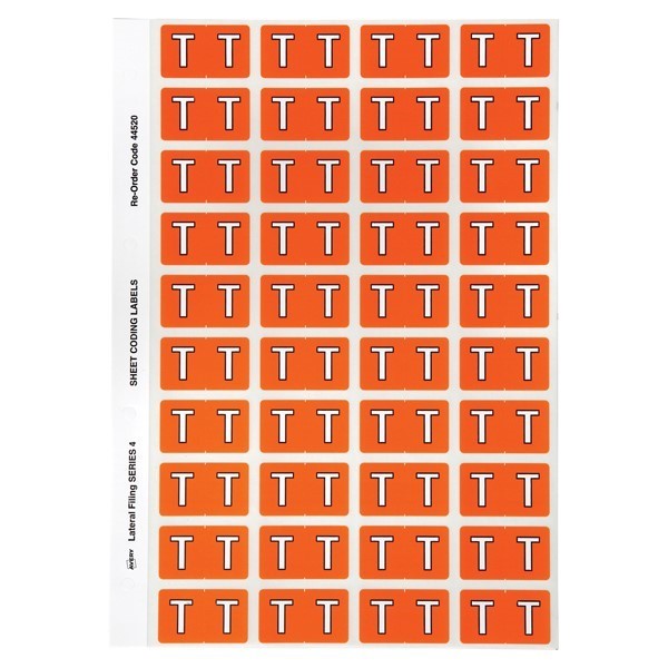 Avery 44520 T Side Tab Colour Coding Labels Orange Pack 240