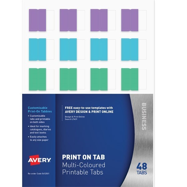 Avery 5412501 Print on Tabs 48 Tabs Multi-Coloured