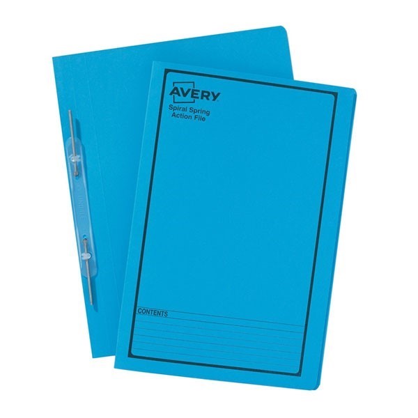 Avery 85204 Spiral Spring Action File Blue with Black Print Foolscap Box 25
