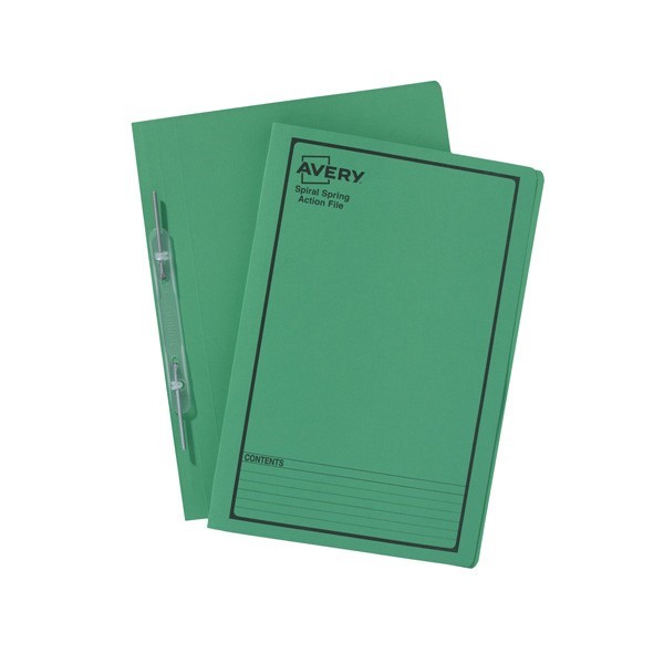 Avery 85304 Spiral Spring Action File Green with Black Print Foolscap Box 25