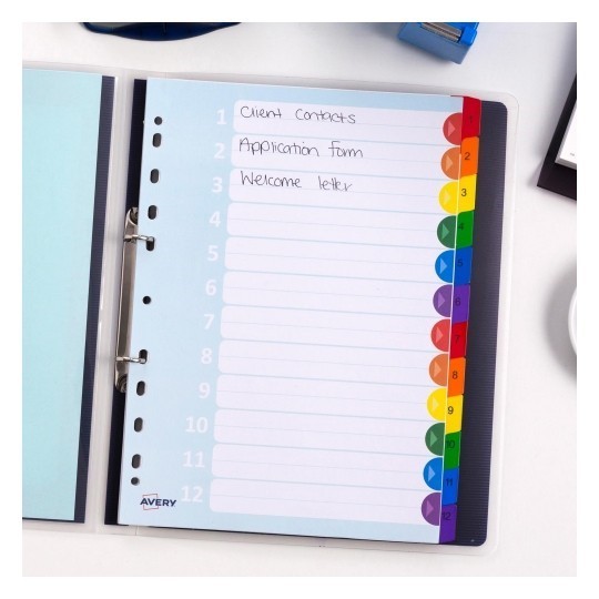 Avery 88712 Pre-Printed Dividers 1-12 Tab A4 Multi-Coloured
