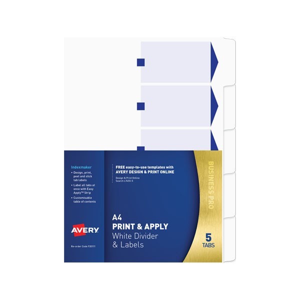 Avery 930111 Print and Apply Label Dividers 5 Tab A4 White
