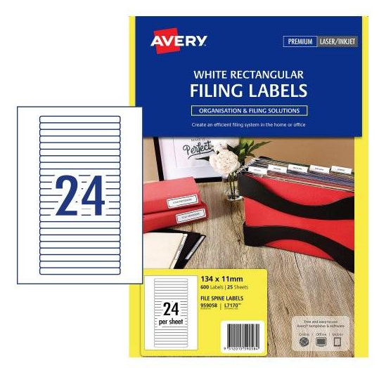 Avery 959058 L7170 Filing Labels Laser Inkjet 134 x 11mm 24 Per Sheet 959058 Pack 25