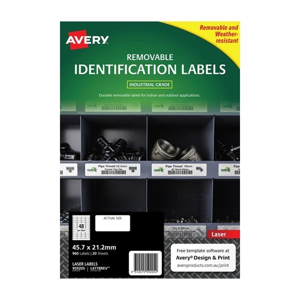 Avery 959205 L4778REV Heavy Duty Removable Labels 45.7 x 21.2mm 48 Per Sheet White Pack 20