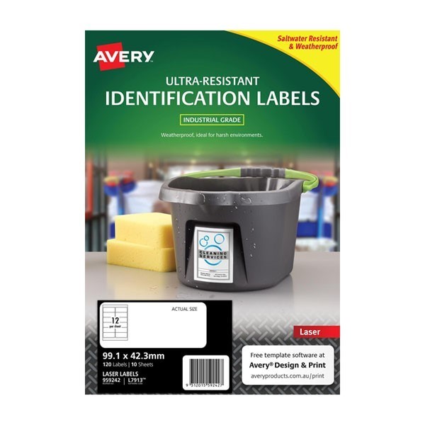 Avery 959242 L7913 Ultra-Resistant Chemical Grade Labels Laser 99.1 x 42.3mm 12 Per Sheet Pack 10
