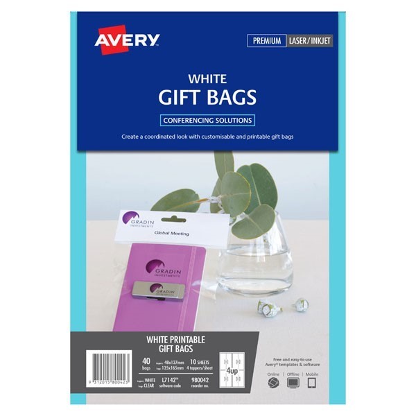 Avery® Printable Bag Toppers come with clear, self-closing bags that make it easy to create and customise professional packaging with your product information or marketing messages.