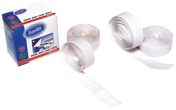 Bantex 8072-00 Self Adhesive Hook & Loop Spot 25mm x 1.8mm White Pack 62