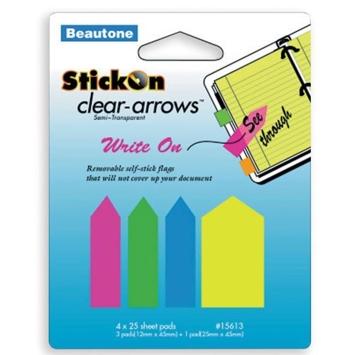 Beautone 15610 Stick on Clear Arrows 12mm x 45mm 5 Assorted Colours x 25 Sheet
