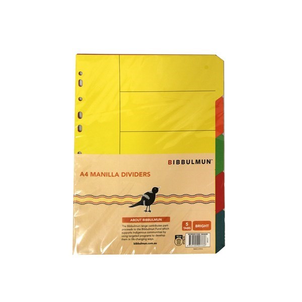 Bibbulmun Manilla Divider A4 5 Tab Brights/39436200