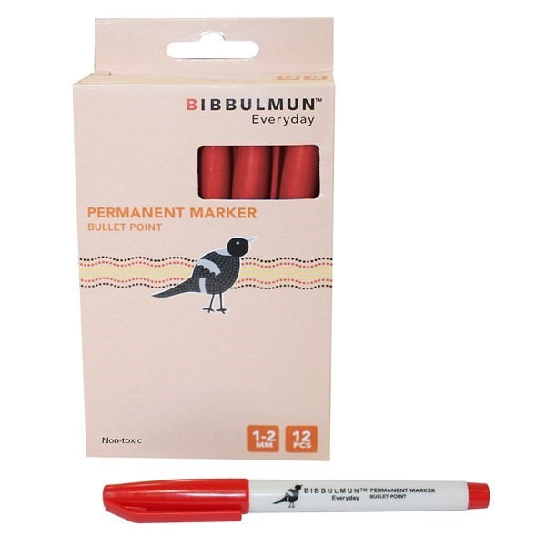 Bibbulmun Permanent Marker 100 Bullet Red Box of 12 (9027496)