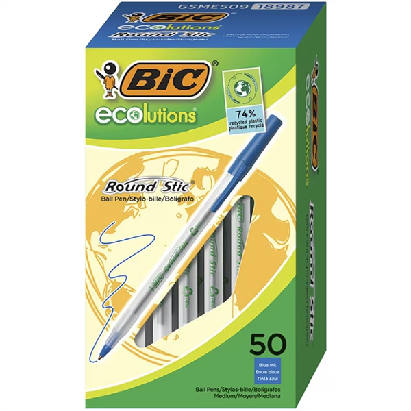 BIC Ecolutions Round Stic Ballpoint Pen Medium Blue Box 50/18987