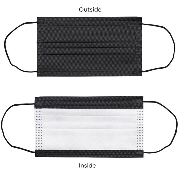 • Three breathable layers • Top layer is non-woven cloth • Filter layer is a melt-blown filter • Bottom layer is non-woven • Standard size fits adults • Comfortable stretchable ear loops • Form Fitting Embedded nose strip • Black Exterior with White Interior • Sold Blank Only • Boxed In Sets Of 50 pieces • Face Masks are latex-free & non-medical.