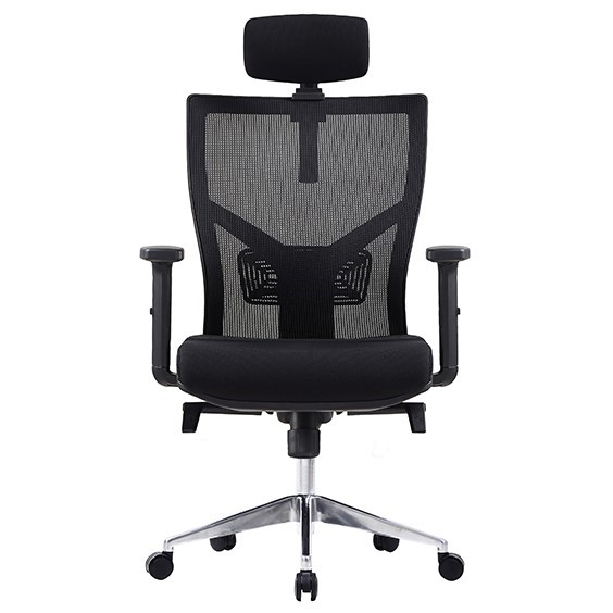Centro High Mesh Back Clerical Chair with Height Adjustable Arms & Back with 3 Lever Headrest & Chrome Base Black Fabric