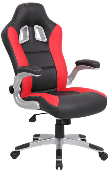 Material: High Grade PU, Plastic, Moulded Foam, Steel Arms / Base: Silver Steel Base with Steel Arms with PU Padding that recline flat with the back to allow closer user to keyboard surface Covering: Red & Black High Grade PU or Blue & Black High Grade PU Features: High Back, Adjustable Seat Height, Comfortable Headrest, Free Float or Lock Mechanism, Padded Arms, Foldback Arms, Tension Adjustment