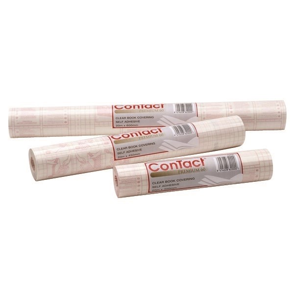 Contact is the premium standard for all book covering needs, made from high quality 80 micron clear gloss polypropylene coated in non-ageing acrylic repositionable adhesive, the red grid backing paper makes measuring and cutting easier