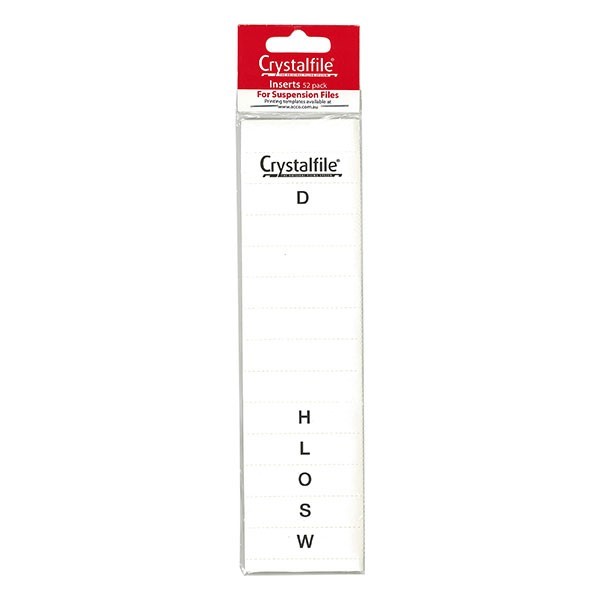 Crystalfile 111540 Inserts A-Z Rectangle White Pack 52