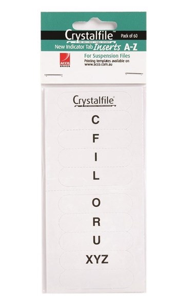 Crystalfile 111540C Inserts A-Z Rounded Corners White Pack 60