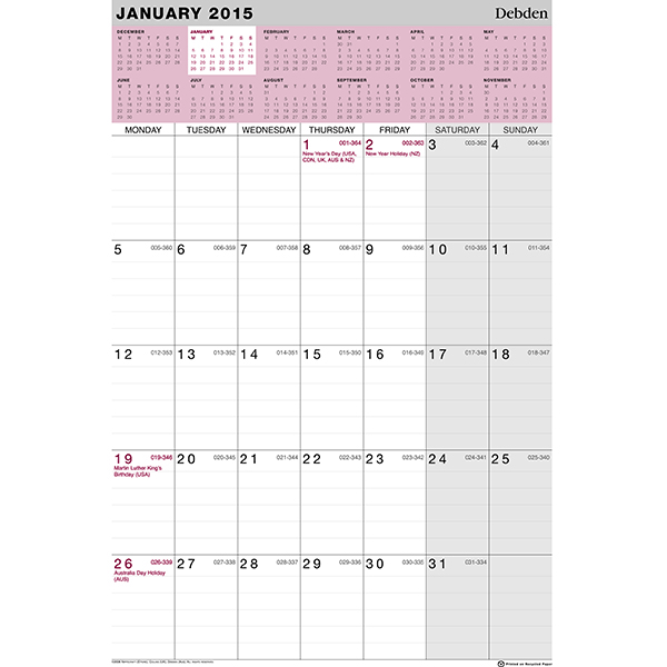 Debden CE0013 Wiro Calendar 2026 Month To A View 432 x 300mm