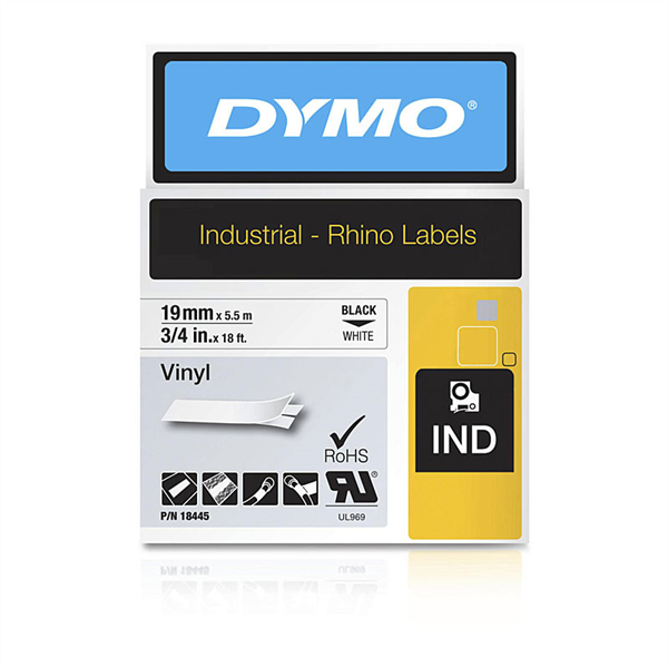 Dymo 18445 Rhino Vinyl Tape 19mm x 5.5m Black On White