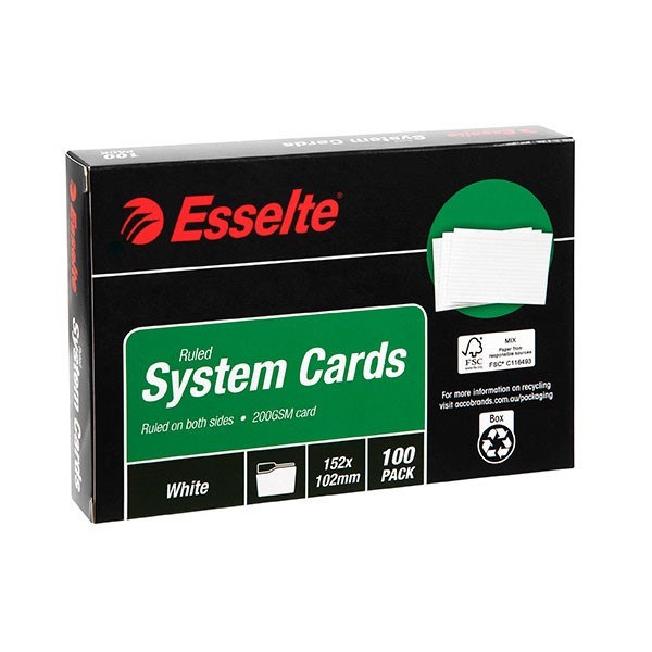 Esselte 31682 System Cards 152 x 102mm 6 x 4 Ruled White Pack 100