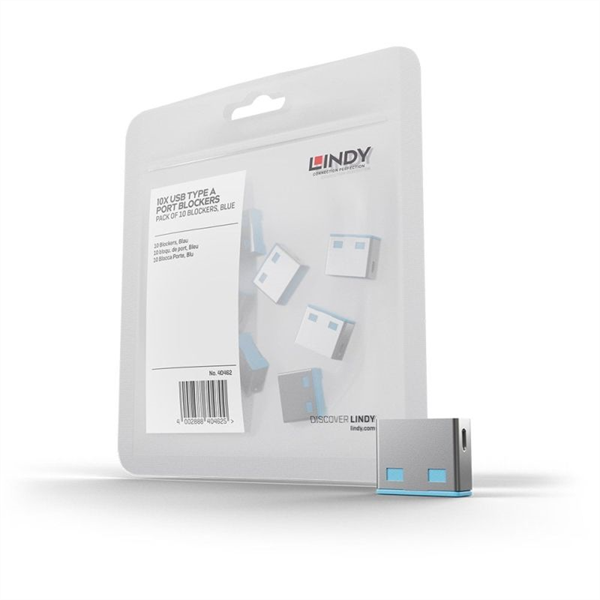 About Lindy USBA Port Block x10 B The USB Port Blocker is made up of a combined 'key' and 'lock' assembly which plugs into the USB port and physically blocks access to it