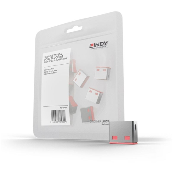 About Lindy USBA Port Block x10 P The USB Port Blocker is made up of a combined 'key' and 'lock' assembly which plugs into the USB port and physically blocks access to it