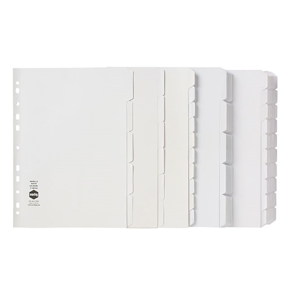 White dividers feature a reinforced binding strip to prevent tearing.