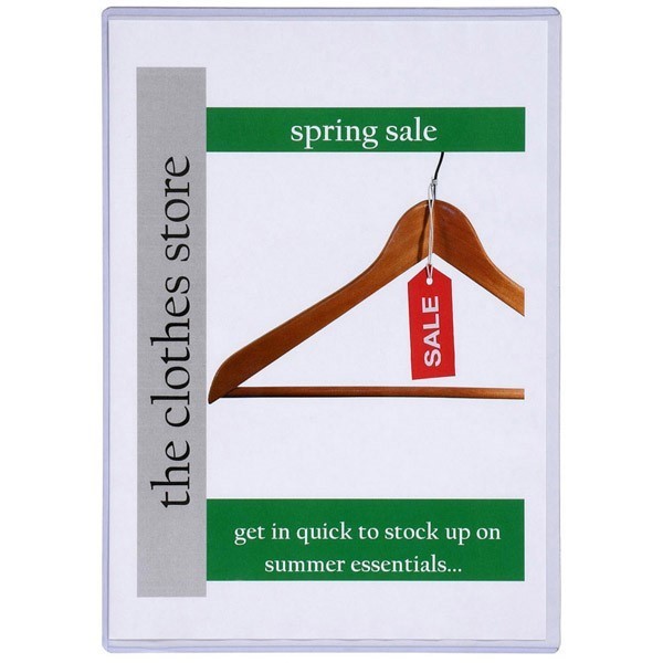Excellent protection for certificates, menus and display material made from crystal clear, high quality, rigid PVC sealed on 3 sides.