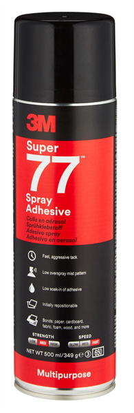 Multi purpose adhesive spray suitable for a wide variety of light-weight day to day permanent bonding applications.