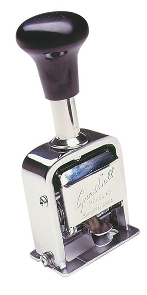 Automatic numbering machine with six wheels and eight actions, comes with ink bottle (black), spare inking pad and wheel changer.