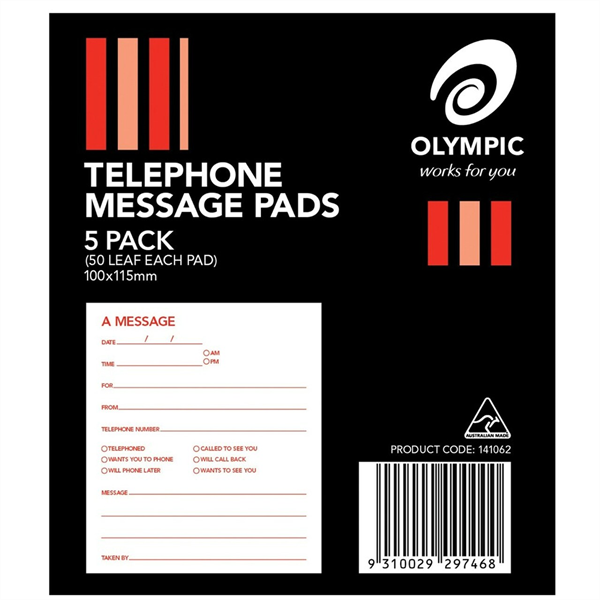 Olympic 141062 Telephone Message Pads 50 Leaf Pack 5