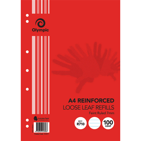Olympic A4 Reinforced Loose Leaf Refills Pack 100