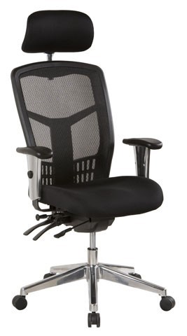 Oyster 1H High Mesh Back Chair with Height Adjustable Arms & Head Rest with 3 Lever & Chrome Base Black Fabric
