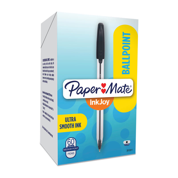 Paper Mate InkJoy 50ST Capped Ball Pen Black Box 60 have a smooth, fast-starting writing system that spreads ink easily without drag