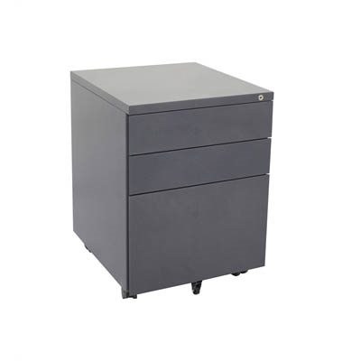Pedestal Metal Mobile 3 Drawers 1 x File + 2 Box Drawers Graphite Ripple