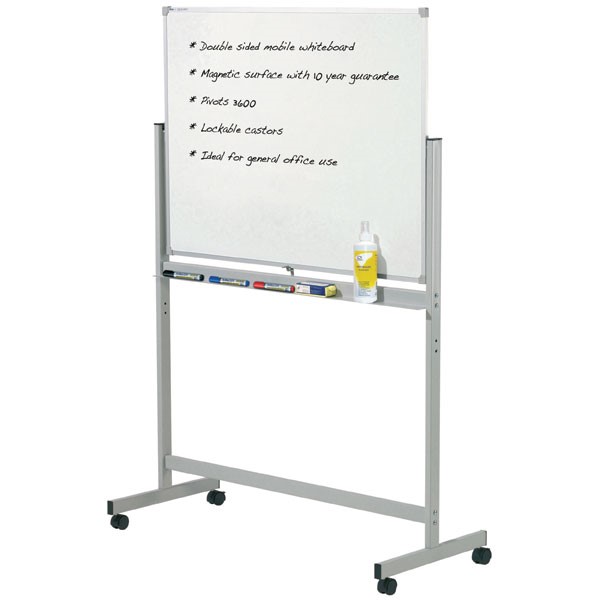Pivoting at 360 degrees this double sided mobile whiteboard with premium magnetic surface is ideal for presentations and meetings