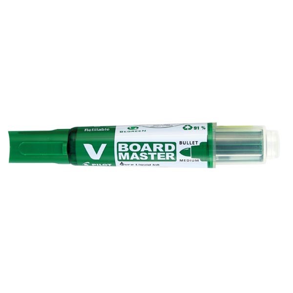 The Pilot BegreeN V Board Master is a refillable whiteboard marker with a light resistant, bright ink that allows for 10 metre visibility