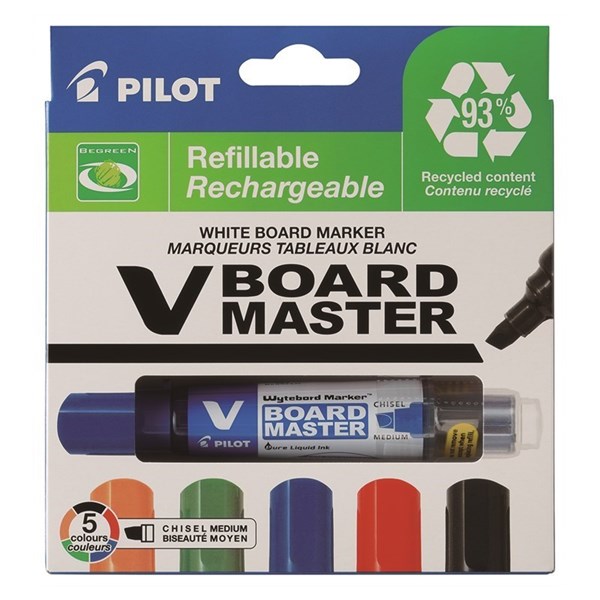 Chisel Tip This marker can be refilled with Pilot Board Master Whiteboard Marker Refill All Pilot BegreeN range is made from a minimum of 70% recycled materials reclaimed from manufacturing