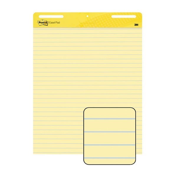 These Post-it® Easel Pad sheets feature premium, canary yellow paper with faint blue lines that resists marker bleed-through; they stick to most surfaces and can be repositioned again and again, without surface damage