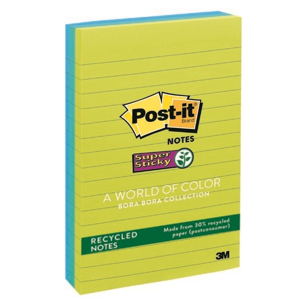 Post It 660-3SST Lined Super Sticky Recycled Notes 101 x 152mm Bora Bora Pack 3