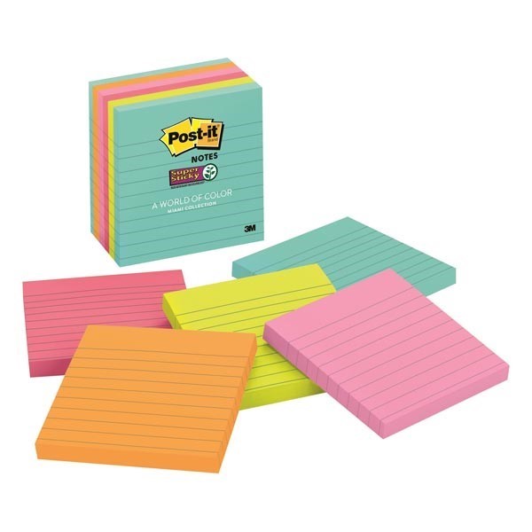 Post It 675-6SSMIA Lined Super Sticky Notes 101 x 101mm Miami Pack 6